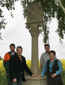 Firma Fuchs, Eisingen, renovieren und wieder aufstellen lassen. Der Bildstock